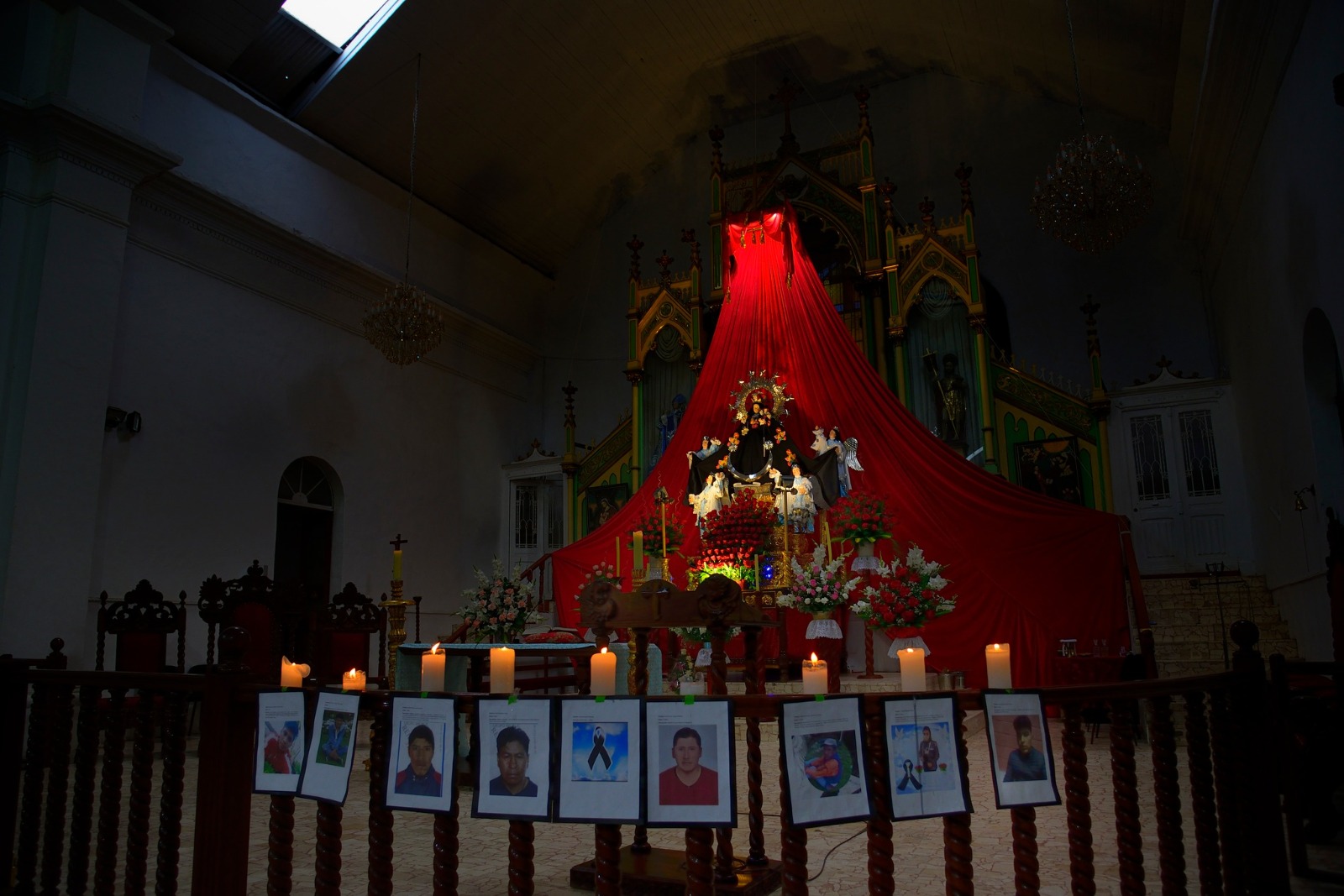 Fotografías de los asesinados en el altar de la Virgen de la Candelaria. Foto de Abad Monte